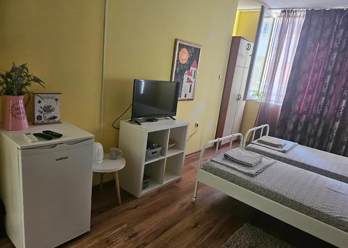 Das Apartment Стая За Двама В Град Бургас ist in ungefähr 5 Gehminuten Entfernung von der Bushaltestelle Gladston. Eine Terrasse können Sie speisen und einen Drink genießen.